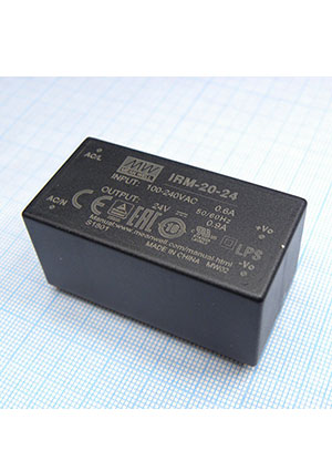 IRM-20-24, AC-DC, 21.6 Вт, вход 85...264В AC 47...440 Гц, 120...370B DC, выход 24В/0.9А,