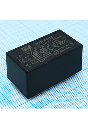 MPM-05-12, AC-DC, 5Вт, вход 80...264В AC 47...440 Гц, выход 12В/0.42А, изоляция 4000В