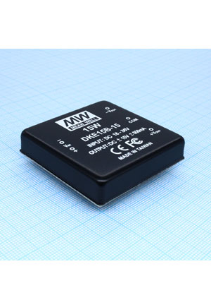 DKE15A-15, DC-DC 15Вт вх 9-18В стабил. вых 15В/ 50 500мА изоляция 1000В DC 50.8х50.8х11мм