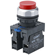667110, Кнопка упр. выступ., NP8-11GN/4 без подстветки, самовозвратом, красн., 1НО+1НЗ,