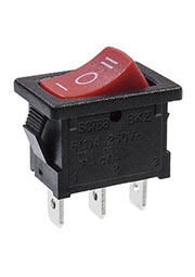 768R-3, переключатель клавишный красный 3 контакта 250В 6А ON-OFF-ON