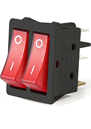 A12B1K11, Выключатель в чёрном корпусе две красные клавиши с подсветкой1НО+1НЗ