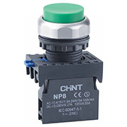 667547, Кнопка упр. NP8-11BND/3 подствет., самовозв., зеленый, AC110-230В(LED), 1НО+1НЗ,