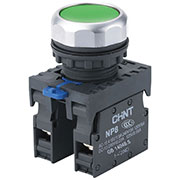 667109, Кнопка упр. выступ., NP8-11GN/3 без подстветки, самовозвратом, зелен., 1НО+1НЗ,