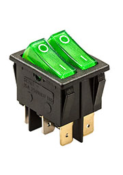 R595BGNBT2-G, переключатель клавишный 2хON-OFF с зеленой подсветкой 250В 16A (аналог