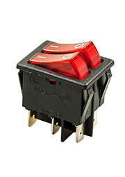 RS-608FBL0BRBT2-G, переключатель клавишный 2хON-ON 250В 16А с красной подсветкой (B127B)